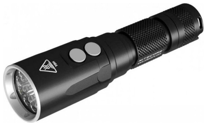Latarka Nitecore DL20 1000 Lumenów Nitecore DL20 to latarka głębinowa, zaprojektowana w taki sposób by przeciwstawić się najcięższym warunkom panującym w podwodnym środowisku. Konstrukcja posiada obudowę z wytrzymałego aluminium lotniczego i podwójne uszczelki. Dzięki temu DL20 wytrzymuj zanurzenie do 100 m jak również cechuje ją wysoka odporność przed korozją i zużyciem. Maksymalna moc latarki DL20 wynosi 1000 lumenów, a maksymalny zasięg wiązki światła to 222 metrów. Zapewni to bardzo dobrą widoczność dla wszystkich entuzjastów nurkowania. Urządzenie posiada również delikatne czerwone światło do robienia zdjęć pod wodą. Nitecore DL20 to lekkie i łatwe w użyciu narzędzie. Latarka waży zaledwie 135 g, zapewnia dobry chwyt pod wodą oraz dzięki dwóm przyciskom pozwala na szybkie przełączanie pomiędzy światłem białym a czerwonym. DL20 wyposażono również w regulowany pasek który można podłączyć do nadgarstków lub przymocować do ekwipunku. Specyfikacje: Dioda LED / CREE XP-L HI V3 Maksymalna jasność / 1000 lumenów Zasięg wiązki światła / 222 m Maksymalna Intensywność światła / 12400 cd Certyfikat / IPX8 – wytrzymuje zanurzenie do 100 m Ochrona od upadku / 1 m Wymiary / 13.3 cm x 3.37 cm x 3.37 cm Waga / 135 g
