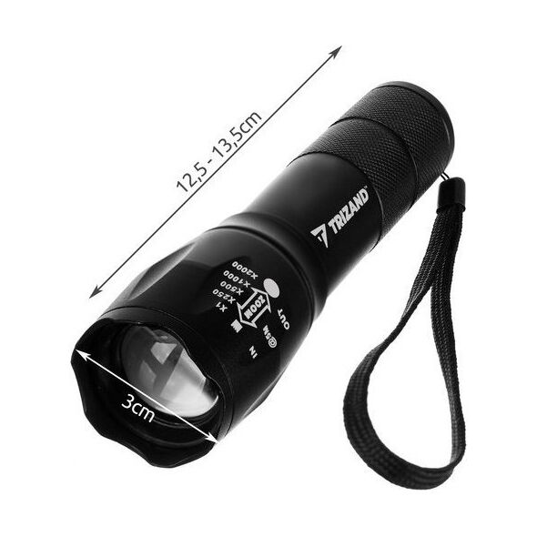 ΟΜΑΛΗ ΡΥΘΜΙΣΗ ΖΟΥΜ; η λάμπα έχει ομαλή ρύθμιση ζουμ, εστιάζει τις δέσμες φωτός από πολύ ευρεία έως υψηλή εστίαση x1, x250, x500, x1000, x2000.