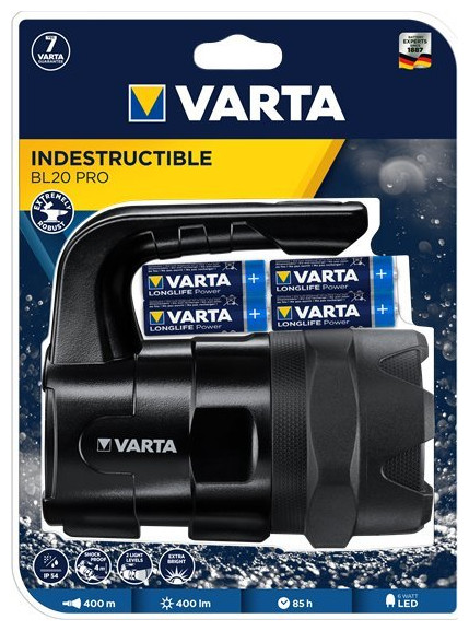 Varta ΑΝΤΙΣΤΡΩΤΟ BL20 PRO. Τύπος φακού: Φακός χειρός, Χρώμα προϊόντος: Μαύρο, Αντοχή σε κραδασμούς έως: 4 m Τύπος λαμπτήρα: LED, Ισχύς λαμπτήρα: 6 W, Φωτεινή ροή: 400 lm. Τύπος μπαταρίας: AA, Χρόνος λειτουργίας μπαταρίας: 85 h Ποσότητα ανά συσκευασία: 1 τεμ.