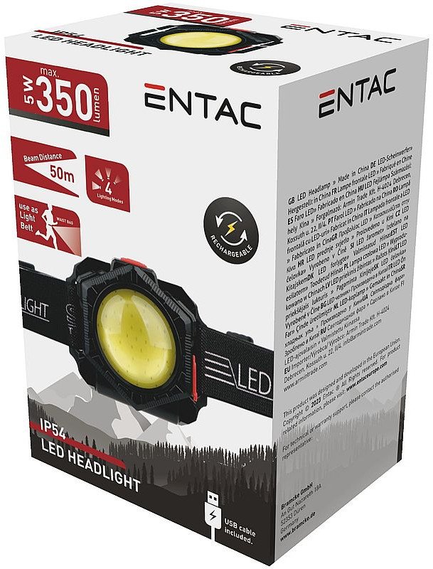 φακός LED ENTAC, IP54, 5W, 350lm, επαναφορτιζόμενος, USB, με αισθητήρα, 4 λειτουργίες
