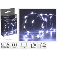 Λαμπάκια χριστουγεννιάτικα Koopman Λαμπάκια σύρματα με μπαταρία γιρλάντα 80 LED ψυχρό λευκό