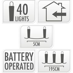 Koopman Φώτα χορδών που τροφοδοτούνται με μπαταρίες γιρλάντα 40 LED ψυχρό λευκό 14215765 8720573662284