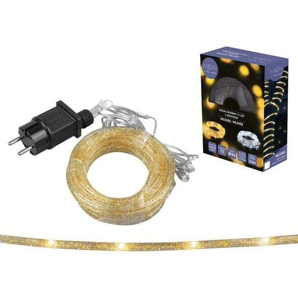 WĄŻ, SZNUR ŚWIETLNY LED RENOMOWANEJ MARKI POLSKIEJ MARKI "LTC" *BĄDŹ ŚWIADOMYM KLIENTEM I WYBIERAJ MARKOWE PRODUKTU OD POLSKIEGO PRODUCENTA MARKI "MOON IN THE ROOM"✅ MAGIA ŚWIĄT W TWOIM DOMU I NA PODWÓRKU Boże Narodzenie jest wyjątkowym okresem. Daj się ponieść fantazji, spraw by te święta były szczególnie wyjątkowe dla Ciebie i Twoich bliskich. ✅ENERGOOSZCZĘDNE DIODY LED Diody zastosowane w tym produkcie charakteryzują się niskim poborem energii a także nowoczesnym wyglądem. Dzięki swojej energooszczędności świetnie sprawdzą się w nadchodzącym okresie świątecznym, kiedy długo pozostają włączone.ŻYWE I BARDZO JASNE BARWY Wysokiej jakości diody wykorzystane w tym sznurze świetlnym usatysfakcjonują nawet najbardziej wymagających użytkowników ceniących świąteczny klimat wewnątrz lub poza budynkiem. BĄDŹ JAŚNIEJSZY OD SĄSIADA Jasne diody zastosowane w sznurze świetlnym przykują uwagę przechodniów, sąsiadów i dzieci. DLACZEGO TE LAMPKI CHOINKOWE? RENOMOWANA POLSKA MARKA "MOON IN THE ROOM" Lampki wykonane z najwyższej jakości materiałów Cechują się intensywnym i czystym światłem Sznur pięknie prezentuje się w ciemności dodając klimatu każdej przestrzeni. Lampki wewnętrzne i zewnętrzne (IP44) Diody umieszone w hermetycznym wężu Bardzo jasne, żywe kolory Przepalenie 1 diody nie wygasza zestawu Energooszczędne diody WEWNĄTRZ I NA ZEWNĄTRZ Lampki zabezpieczone są w szczelnej, elastycznej obudowie, bez najmniejszego problemu można je wykorzystać do ustrojenia domu lub podwórka. Należy jednak pamiętać aby dokładnie zabezpieczyć wtyczkę, przed opadami deszczu i śniegu. OZDABIAJ CO TYLKO CHCESZ CHOINKĘ OKNA W DOMU KRZEWY PŁOT BALKON WITRYNY SKLEPOWE I WIELE INNYCH... SPECYFIKACJA TECHNICZNA Marka: Moon in the room Ilość diod LED: 72 Długość całkowita: 3.6m Odstęp pomiędzy diodami: 5cm Kolor: Złoty Barwa światła: Światło ciepłe białe Izolacja: Przezroczysta Stopień ochrony: IP44 Użytek: Zewnętrzny i wewnętrzny Długość kabla zasilającego: 3m Napięcie zasilania: 100-240V, 50/60Hz