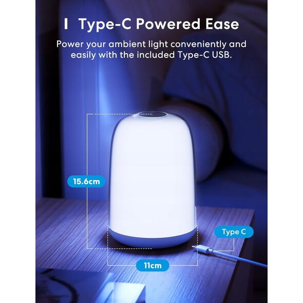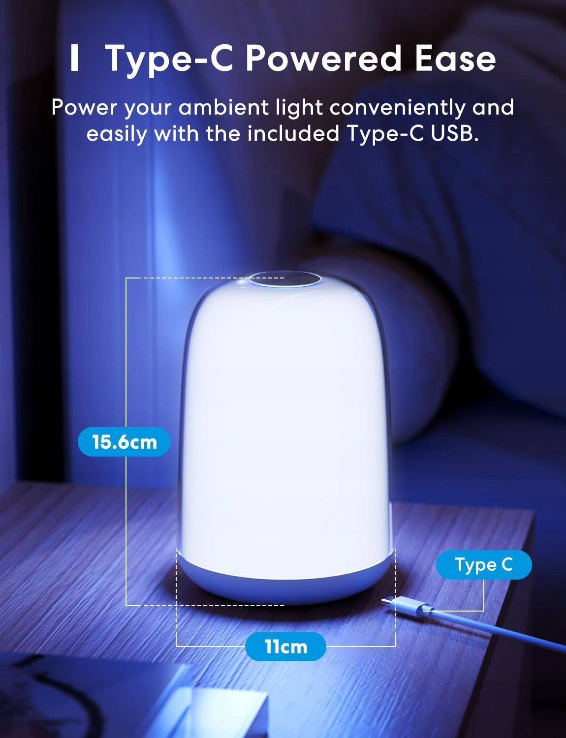 Lampka ma wymiary 11 × 11 × 15,6 cm i jest zasilana przez USB-C (zasilacz w zestawie). Co więcej, urządzenie działa w sieci Wi-Fi 2,4 GHz i oferuje lokalne sterowanie z czasem reakcji sięgającym zaledwie 0,01 s.