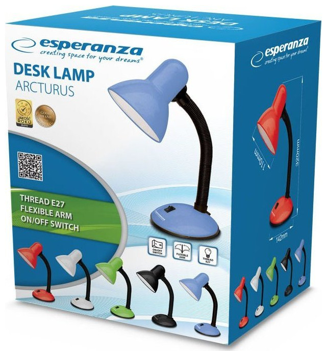 Szkolna lampka biurkowaPrzenośna lampka biurkowa jest idealna do pracy w domu, szkole lub biurze. Elastyczne ramię umożliwia ustawienie lampki pod dowolnym kątem, dzięki czemu możemy dowolnie regulować kierunek światła. W lampce można instalować żarówki LED z gwintem E27 i mocą do 12W.