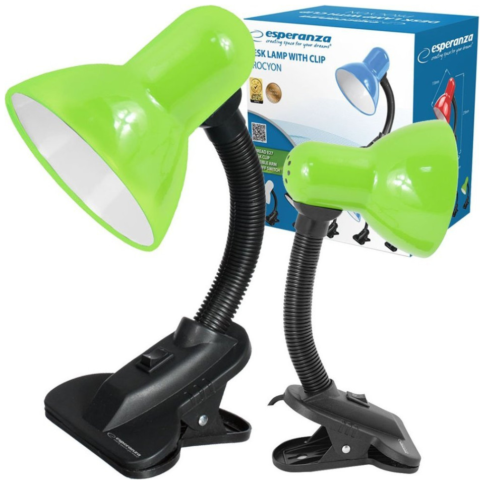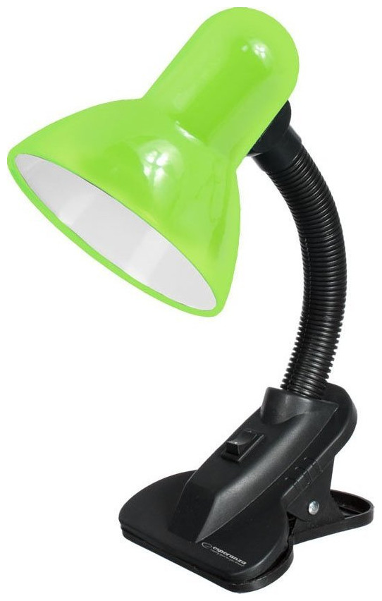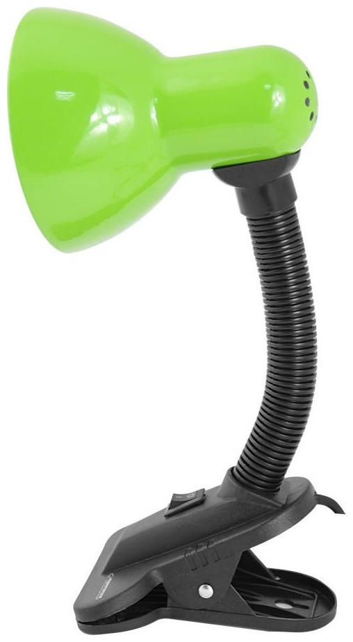 Lampka biurkowa z klipsemNiewielka, przenośna lampka biurkowa z klipsem, który umożliwia łatwy i szybki montaż lampki do biurka, półki lub innej powierzchni. Elastyczne ramię umożliwia ustawienie lampki pod dowolnym kątem, dzięki czemu możemy dowolnie regulować kierunek światła. W lampce można instalować żarówki LED z gwintem E27 i mocą do 12W.