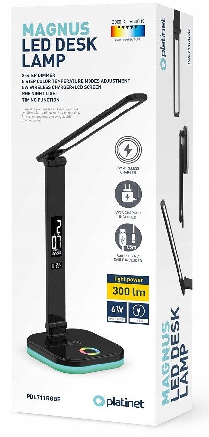 Platinet desk lamp PDL711RGB, black (46217)