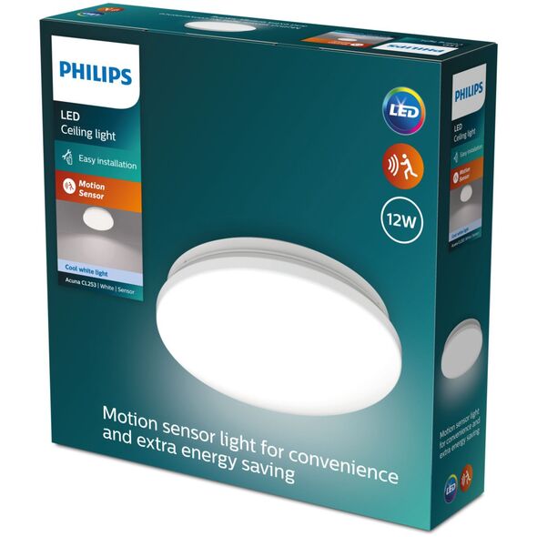 Φωτιστικό οροφής LED PHILIPS ACUNA 12W 4000K 1500lm με αισθητήρα κίνησης O24.5x6.3cm