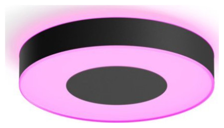 Philips Hue Λευκό και χρωματική ατμόσφαιρα Με μεγάλο φωτιστικό οροφής. Μοντέλο: Έξυπνο φωτιστικό οροφής, Χρώμα προϊόντος: Μαύρο, Τυπικές λύσεις επικοινωνίας: Bluetooth. Κατηγορία ενεργειακής απόδοσης: G, Τάση λαμπτήρα: LED, τάση εισόδου AC: LED. Πλάτος προϊόντος: 425 mm, Βάθος προϊόντος: 425 mm, Ύψος προϊόντος: 84 mm. Πλάτος συσκευασίας: 476 mm, Βάθος συσκευασίας: 502 mm, Ύψος συσκευασίας: 100 mm. Ποσότητα ανά συσκευασία: 1 τεμ.{Type} Οροφή . {Αριθμός πηγών φωτός} 1 . {Χρώμα} μαύρο . {Υλικό} πλαστικό