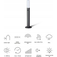 Απλίκα Orno FRENIT LED 20W, φωτιστικό κήπου με αισθητήρα κίνησης, 1800lm, IP65, 4000K, λειτουργία μείωσης φωτεινότητας, μαύρο