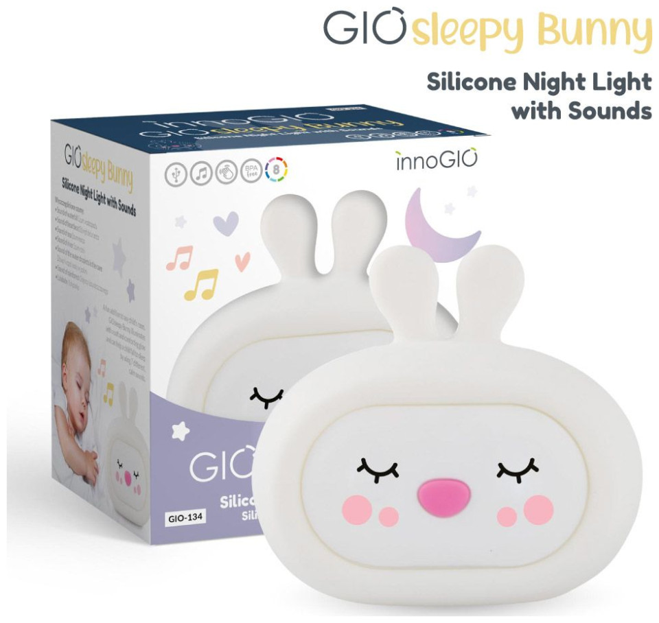 Το GIOsleepy Bunny έχει 7 διαφορετικούς θορύβους προ-φορτωμένους - τον ήχο ενός καταρράκτη, τον ήχο ενός καρδιακού παλμού, τον ήχο της θάλασσας, των ποταμών,
