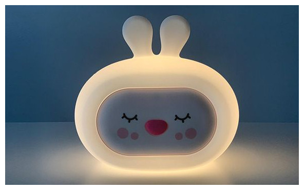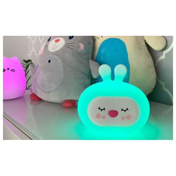 Το φωτιστικό λάμπει σε 8 χρώματα, τα οποία μπορούν να αλλάξουν αγγίζοντας το κουνελάκι με το χέρι σας. Το πάτημα της μύτης ενεργοποιεί μελωδίες,