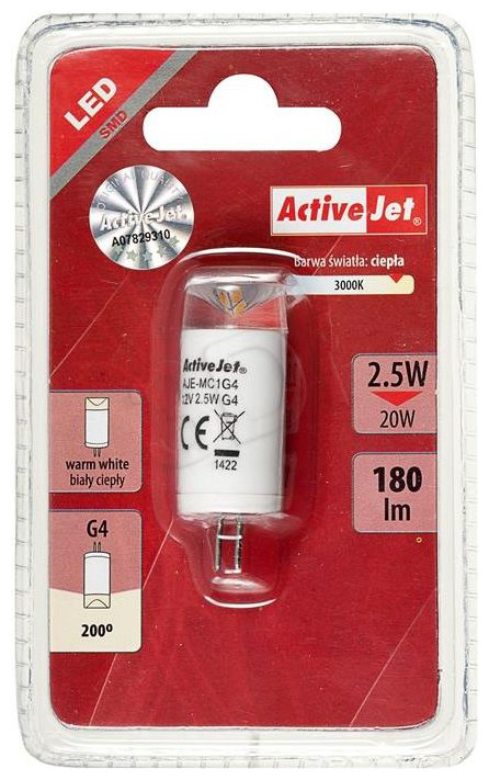 Οι λαμπτήρες LED χαρακτηρίζονται μεταξύ άλλων από: - υψηλή φωτεινή απόδοση (υψηλή φωτεινότητα με χαμηλή κατανάλωση ενέργειας), - πολύ μεγάλη αντοχή (έως 50.000 ώρες), - εξαιρετικά χαμηλό ποσοστό αστοχίας, μεταξύ άλλων: χάρη στην υψηλή αντοχή σε κραδασμούς, κρούσεις και κραδασμούς, - χωρίς υπεριώδη και υπέρυθρη ακτινοβολία, - χωρίς περιεκτικότητα σε υδράργυρο επιβλαβή για το περιβάλλον.{Αριθμός τεμαχίων} 1 . {Αριθμός τεμαχίων} 1 . {Άξονας} 4G . {Άξονας} 4G . {Type} Κανονικό . {Type} Κανονικό . {Ισχύς [W]} 2,5 . {Ισχύς [W]} 2,5 . {Νέα ενεργειακή κλάση} Κατηγορία G. {Νέα ενεργειακή κλάση} Κατηγορία G