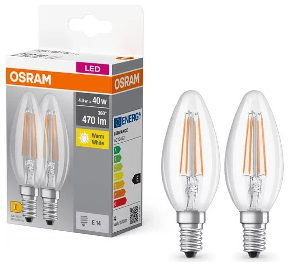 ΛΑΜΠΑ LED B40 4W E14 827 470LM FIL 2PCS