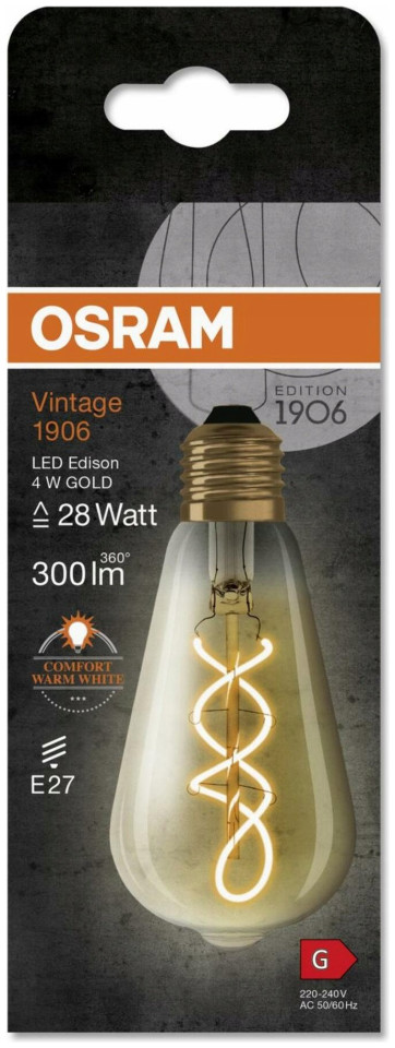 ΛΑΜΠΑ LED EDISON 4W E27 820 300LM FIL