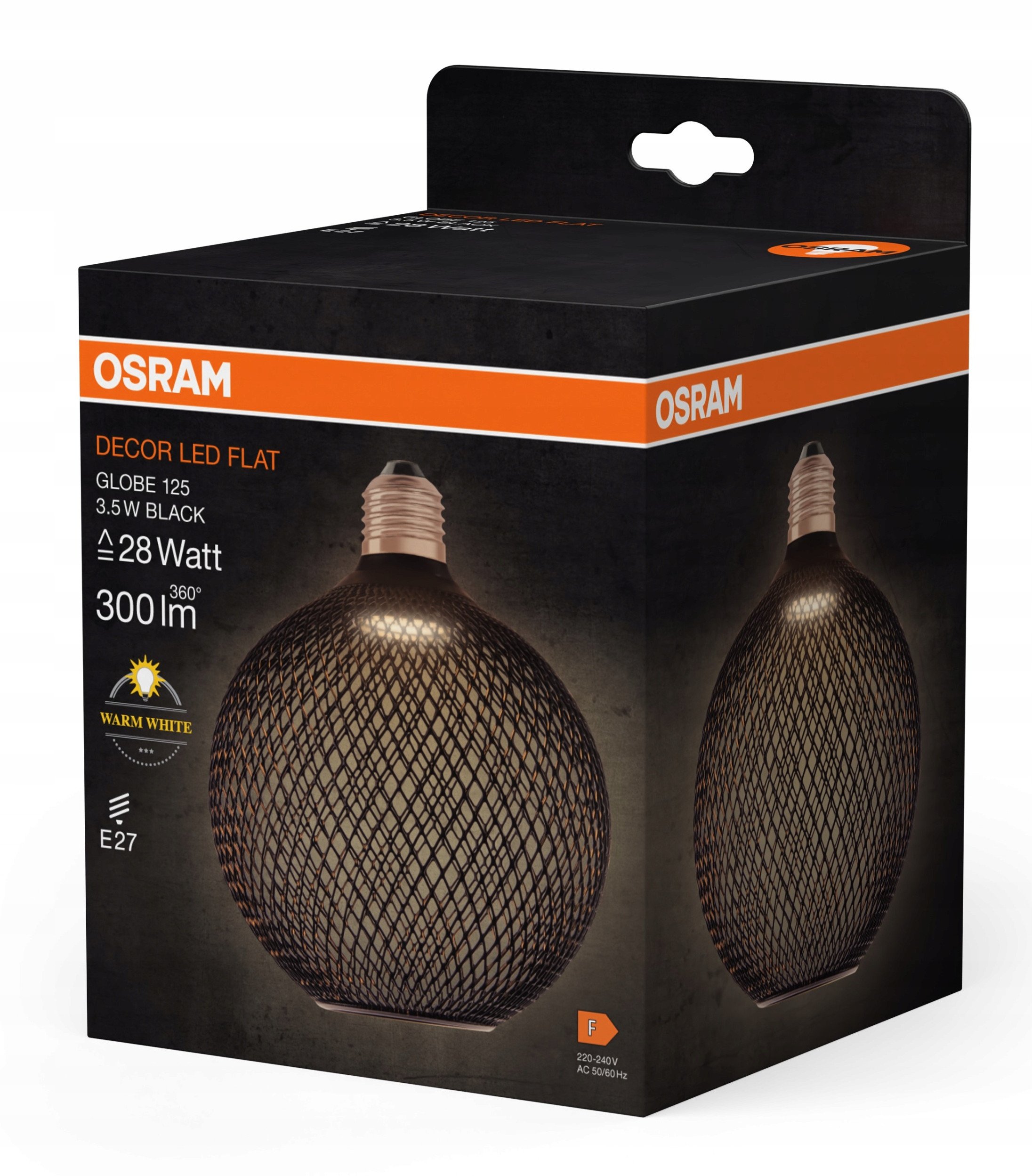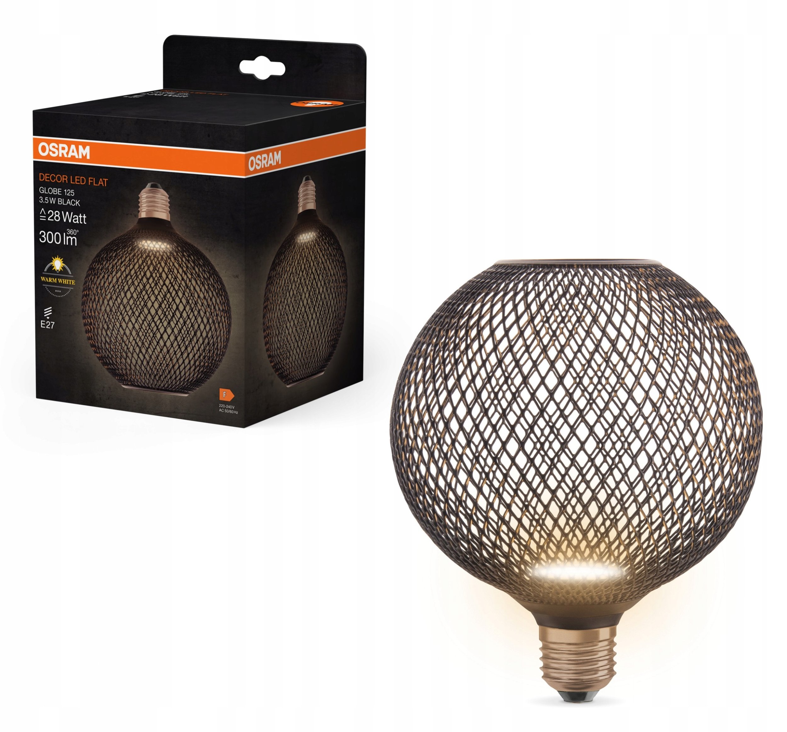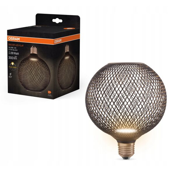 Διακοσμητικός λαμπτήρας LED OSRAM FLAT, E27 G125BK, 3.5 W, 2700K, 300 lm, NON-DIM, μαύρο χρώμα.