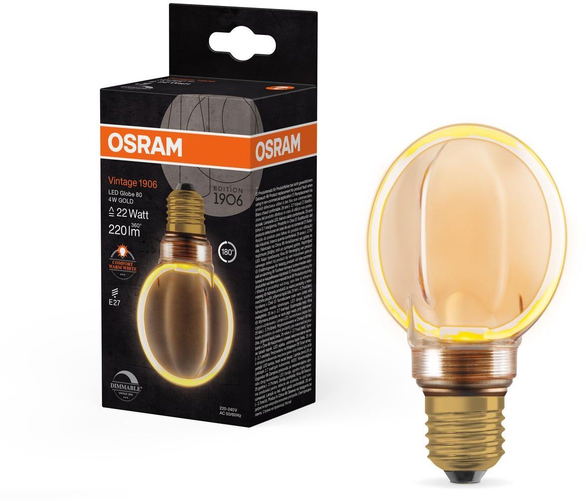 Διακοσμητικός λαμπτήρας LED OSRAM O-FILAMENT, G80, E27, 4W, 1800K, 110lm, ρυθμιζόμενης έντασης
