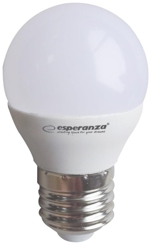 Żarówka LED Esperanza o mocy 3W. Wymiary: Średnica 45 mm Długość 80 mm Dlaczego żarówki LED? Ogromne oszczędności na kosztach oświetlenia, Żarówki LED zużywają do 85% mniej energii elektrycznej niż standardowe żarówki. Żarówki LED oferują znacznie dłuższy okres żywotności w porównaniu do żarówek. Żarówki LED są bardziej energooszczędne Działają w niskich temperaturach, bezpieczniejsze do zainstalowania, i marnują mniej ciepła. Przyjazne dla środowiska, nie zawierają żadnych szkodliwych substancji, takich jak rtęć, są bezpiecznie do ponownego przetworzenia.