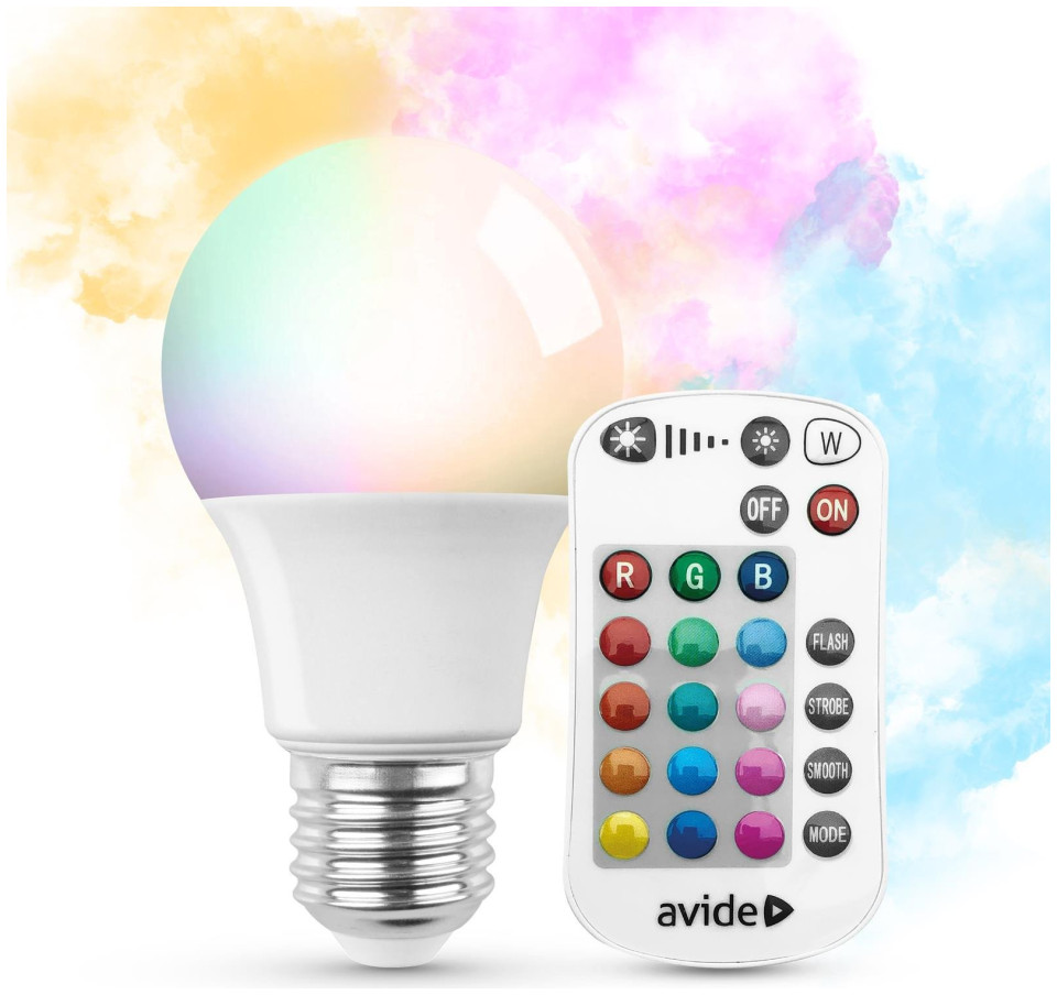 Λάμπα LED AVIDE, E27, A60, 9.7W (=60W), RGB, 2700K, 806 lm, ρυθμιζόμενη, 200 μοίρες, με τηλεχειριστήριο