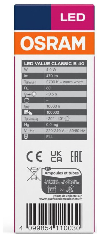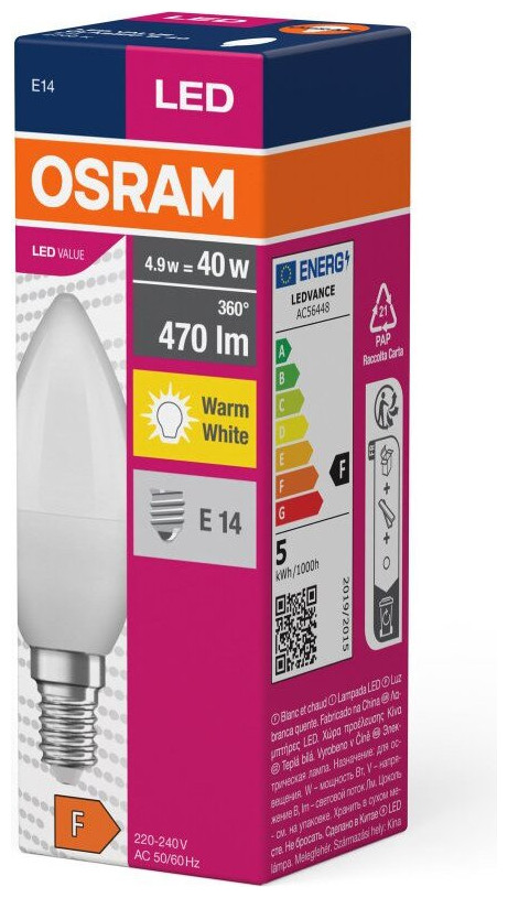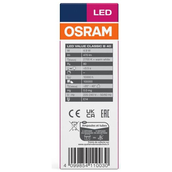 ΛΑΜΠΑ LED B40 E14 4.9W 827 470LM VALUE