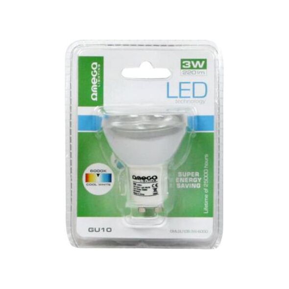 LED Spot Light Λαμπτήρας αλουμινίου με υποδοχή GU10, 3W, ο λαμπτήρας έχει διάρκεια ζωής 25.000 ώρες και το φως έχει ψυχρό λευκό χρώμα.{Άξονας} GU10 . {Άξονας} GU10 . {Χρώμα ανοιχτό [K]} 6000 . {Χρώμα ανοιχτό [K]} 6000 . {Τάση [V]} 230 . {Τάση [V]} 230 . {Ισχύς [W]} 3 . {Ισχύς [W]} 3 . {Αριθμός τεμαχίων} 1 . {Αριθμός τεμαχίων} 1 . {Μέση διάρκεια ζωής [h]} 25000 . {Μέση διάρκεια ζωής [h]} 25000 . {Type} Κανονικό . {Type} Κανονικό . {Νέα ενεργειακή κλάση} Κατηγορία F. {Νέα ενεργειακή κλάση} Κατηγορία F