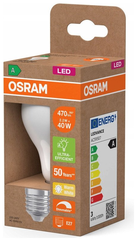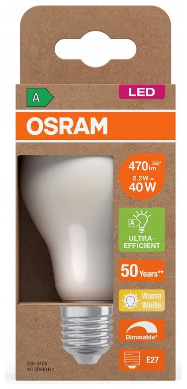 OSRAM LED standard ματ 470lm 2,2W/827 (40W) E27 ενεργειακή κλάση A ρυθμιζόμενο