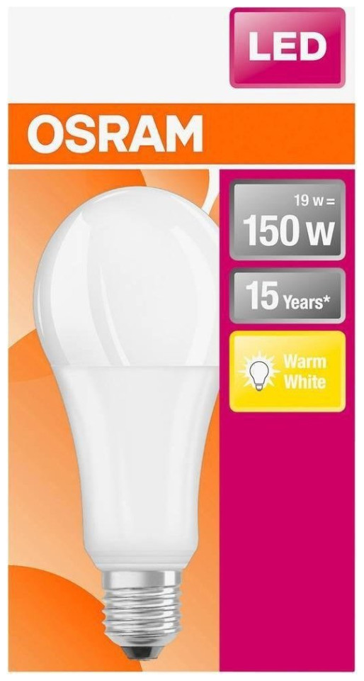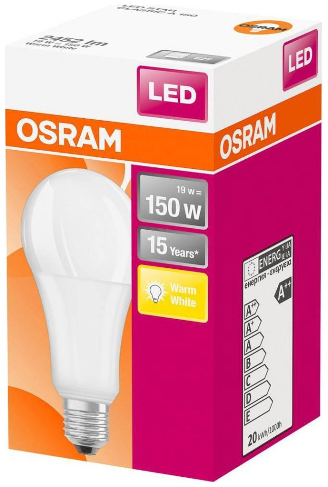 Osram ST CLAS A. Λάμπες: 19 W, Ισοδύναμη ισχύς λαμπτήρα: 150 W, Ανακλαστήρας: E27, Φωτεινή ροή: 2452 lm, Διάρκεια ζωής λαμπτήρα: 15000 h, Χρώμα φωτός: Θερμό λευκό, Θερμοκρασία χρώματος: 2700 K, Γωνία δέσμης: 150 °, Δείκτης απόδοσης χρωμάτων (CRI): 80, Συντελεστής ισχύος: 0,5{Cap} E27 . {Cap} E27 . {Cap} E27 . {Χρώμα ανοιχτό [K]} 2700 . {Χρώμα ανοιχτό [K]} 2700 . {Χρώμα ανοιχτό [K]} 2700 . {Νέα ενεργειακή κλάση} Κατηγορία Ε. {Νέα ενεργειακή κλάση} Κατηγορία Ε. {Νέα ενεργειακή κλάση} Κατηγορία Ε. {Ισχύς [W]} 19,0 . {Ισχύς [W]} 19,0 . {Ισχύς [W]} 19,0