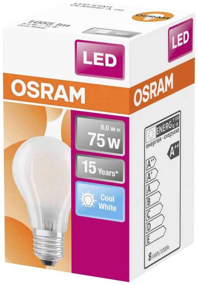 Λάμπα LED OSRAM, E27, 8 W = 75 W, 4000 K