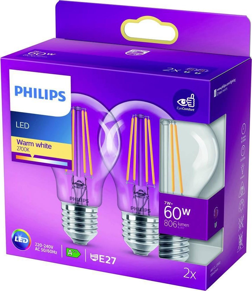 Philips Philips LED Bulb E27 2-Pack 7W (60W) 2700K 806lm Vintage