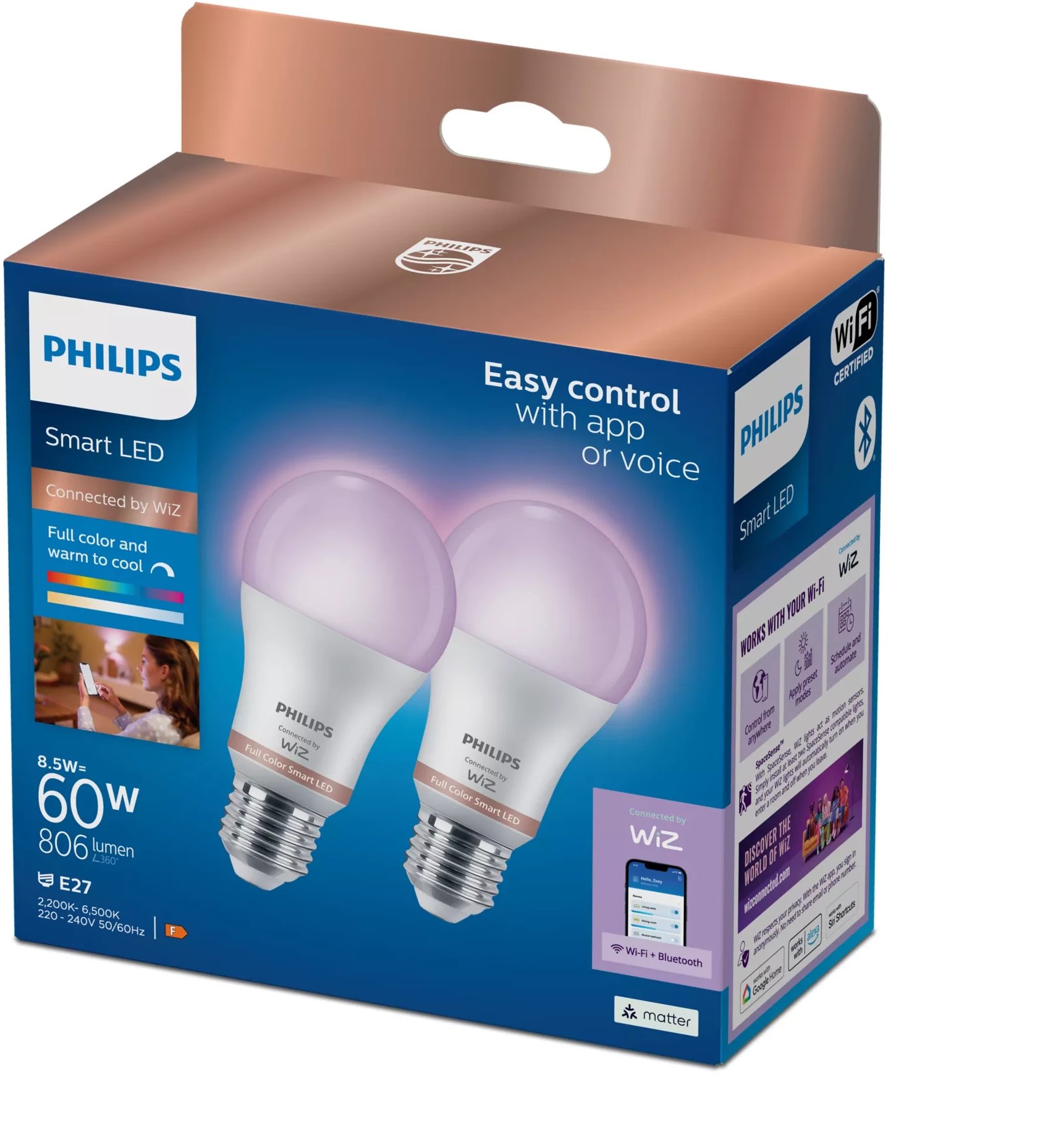 Philips Wiz Full Color Smart LED Bulb E27 2 τεμ. λευκό - Έξυπνη λάμπα
