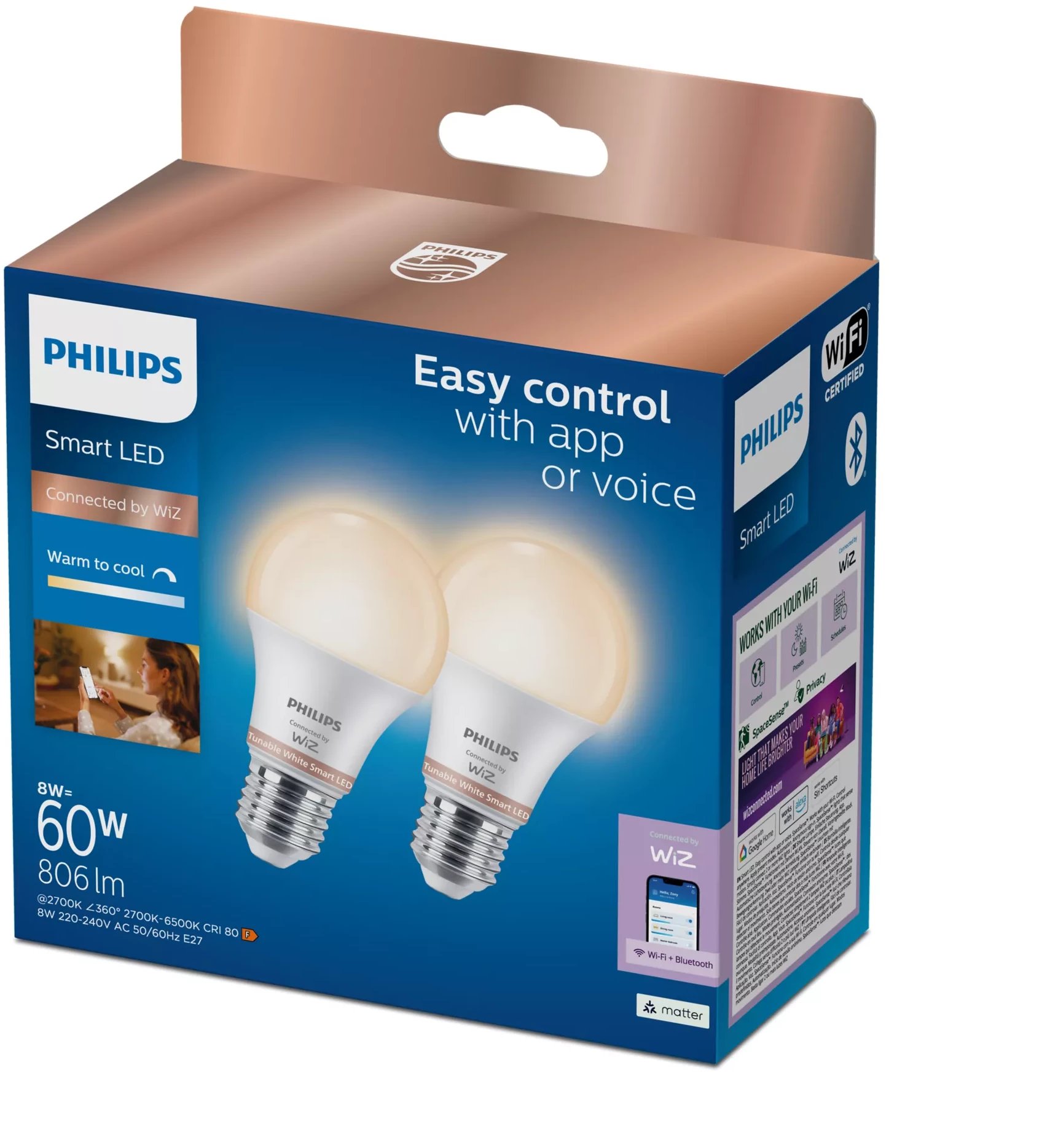 Philips Wiz Smart LED Bulb E27 2 τεμ. λευκό - Έξυπνη λάμπα