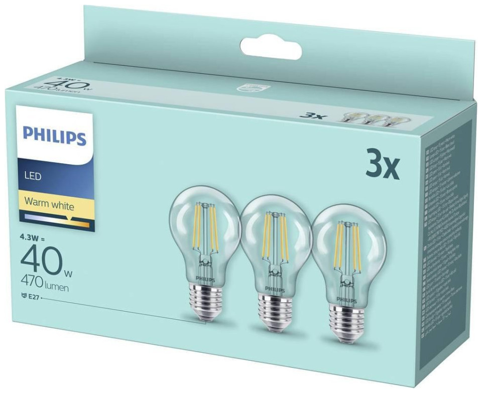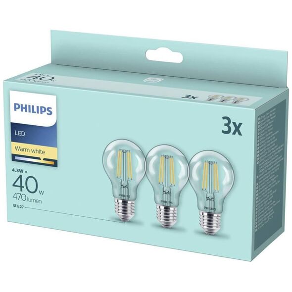 Philips Λάμπα LED Philips E27, 4.3W, 470lm, 2700K 3 τεμ.