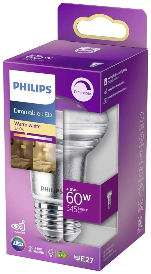 Λάμπα LED Philips, E27, 4.5W, 345lm, 2700K
