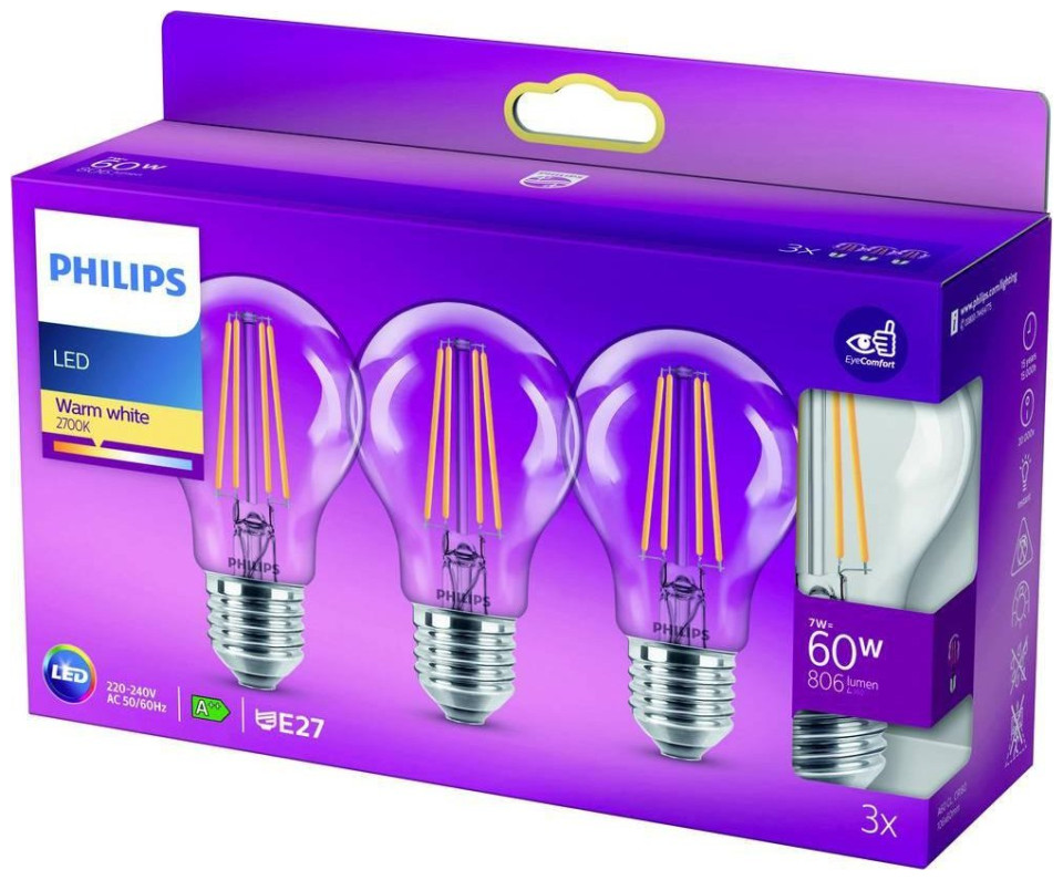 Philips Λάμπα LED Philips E27, 7W, 806lm, 2700K 3 τεμ.