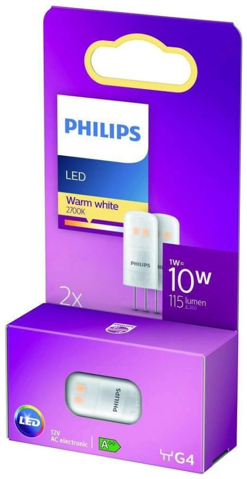 Λάμπα LED Philips, G4, 1W, 110lm, 2700K, 2 τεμ.