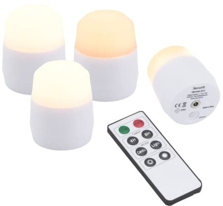 Security System Securit® 4 stk. Dodatkowy AMSTERDAM LED Świeczki, ekskl. stacja ładująca, biały ściemniane
