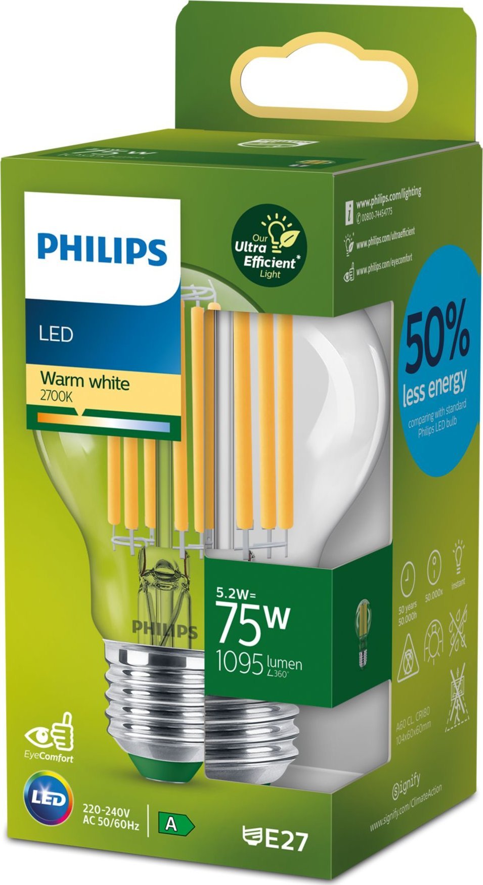Λάμπα Signify Philips Classic LED-A-Label 75W E27 διαφανής ζεστό λευκό μη ρυθμιζόμενη