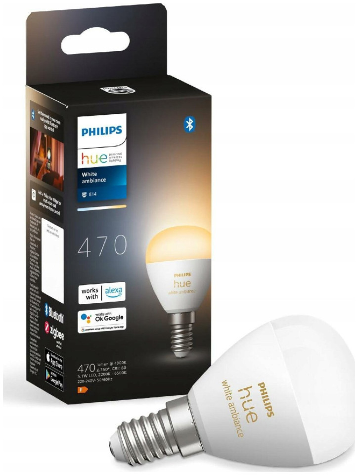Signify Philips Hue White Amb. E14 Luster Tropfen Einzelpack 470lm