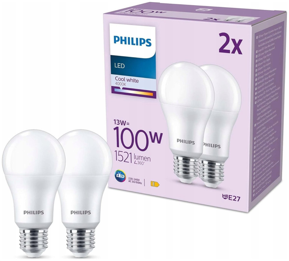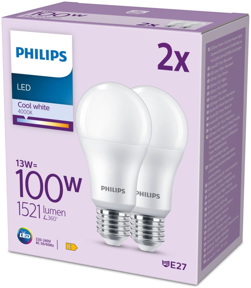Λάμπα Signify Philips LED κλασική 100W E27 Ψυχρό λευκό 1521lm ματ 2 τεμ P
