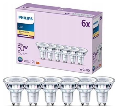 Signify Philips LED κλασική λάμπα 50W GU10 θερμό λευκό 355lm ασημί 6 τεμ