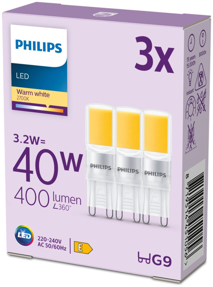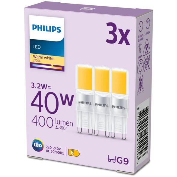 Signify Philips LED Standard Λαμπτήρας 40W G9 Θερμό Λευκό μη ρυθμιζόμενο 3 τεμ