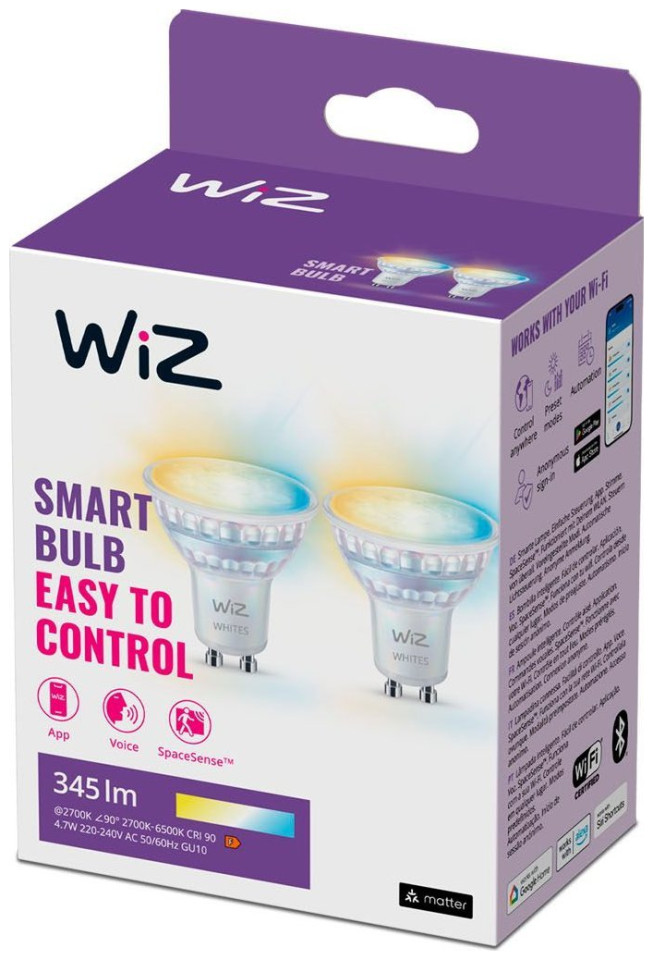 Signify WiZ White GU10 Ρυθμιζόμενο 60W Γυαλί Διπλή Συσκευασία