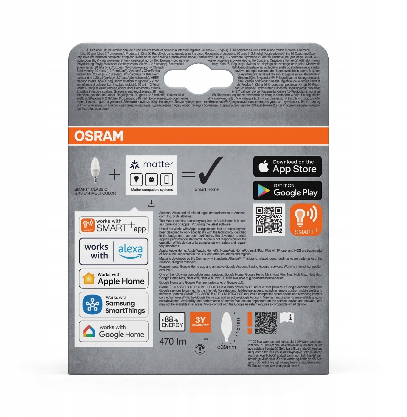SMARTWIFIB40 5W 230V RGBWFR E14 4X3LEDV