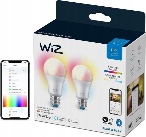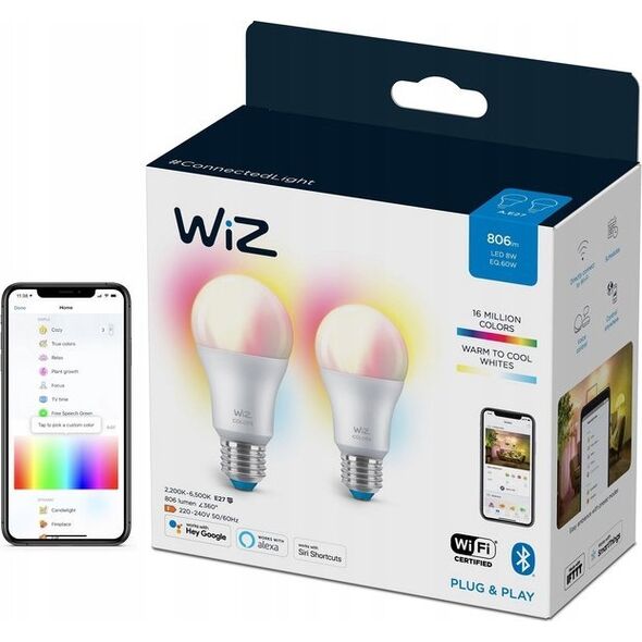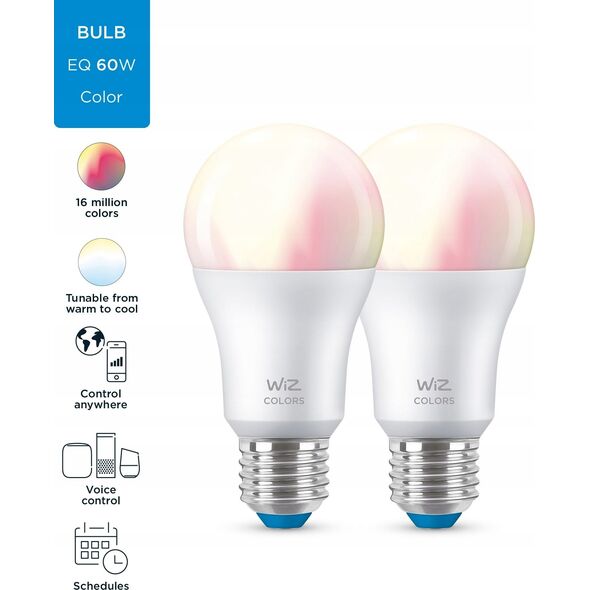 WiZ 60W E27 Standard Tunable Λευκό & Χρώμα Διπλή Συσκευασία