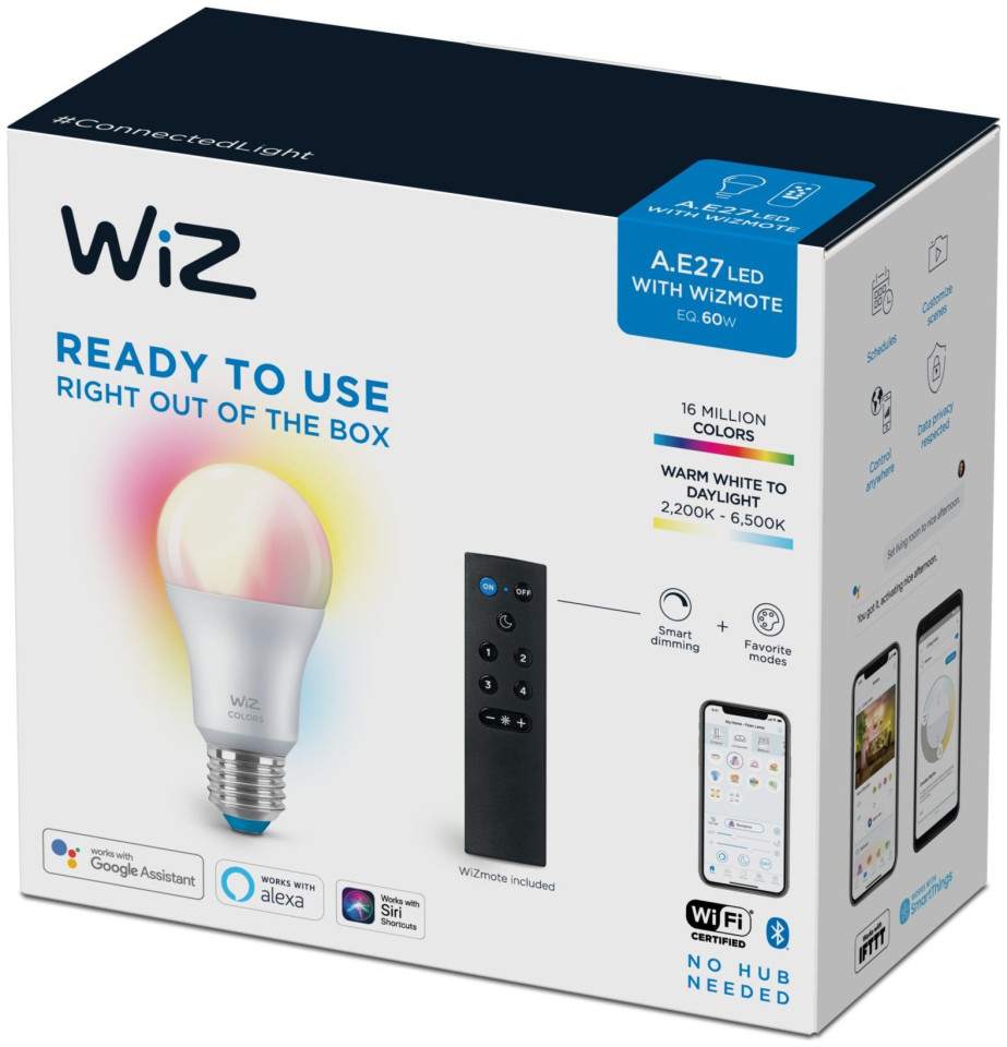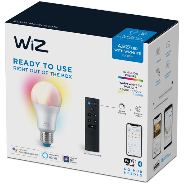 WiZ White & Color 60W E27 A60 Τυπική μορφή 1 τεμ +Τηλεχειριστήριο