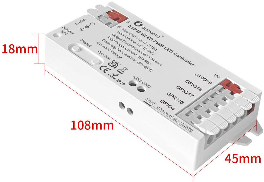Ελεγκτής LED Gledopto Synergy 21 EOS 55 WLED ESP32 PWM 5in1 12/24V (GL-C-211WL)