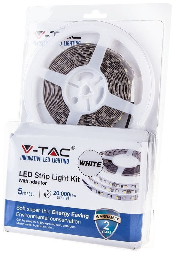 Σετ ταινίας LED V-TAC, IP20, 18 W, 1500 lm, 60 LED/m, ψυχρό λευκό, 5 m