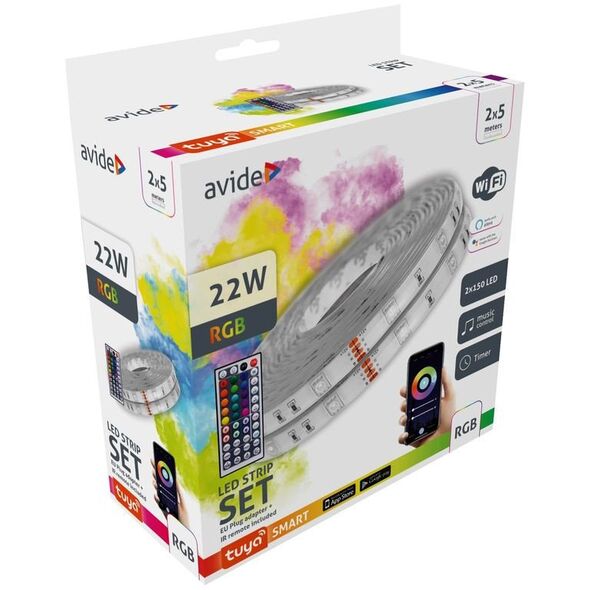 Σετ λωρίδας LED Avide, IP65, 2x150LED, RGB, 22W, 2x5m, ελεγκτής μουσικής, WIFI, με τηλεχειριστήριο, 10m