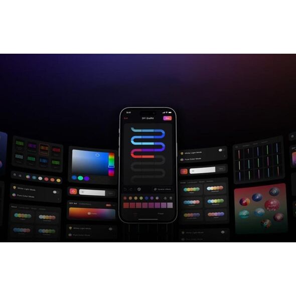 Korzystaj z ponad 20 efektów świetlnych, które doskonale sprawdzą się na różne okazje – od romantycznych wieczorów po imprezy ze znajomymi. Efekty można łatwo zmieniać za pomocą aplikacji Yeelight lub kontrolera, który znajduje się w zestawie. Twórz własne kompozycje dzięki funkcji Freely DIY i dostosuj oświetlenie do swoich potrzeb.