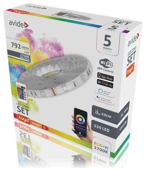 Κιτ έξυπνης λωρίδας LED AVIDE, IP65, 30LED/m, RGB, 22W, ρυθμιζόμενο, WIFI, ελεγχόμενο από τηλέφωνο, με τηλεχειριστήριο, 5m